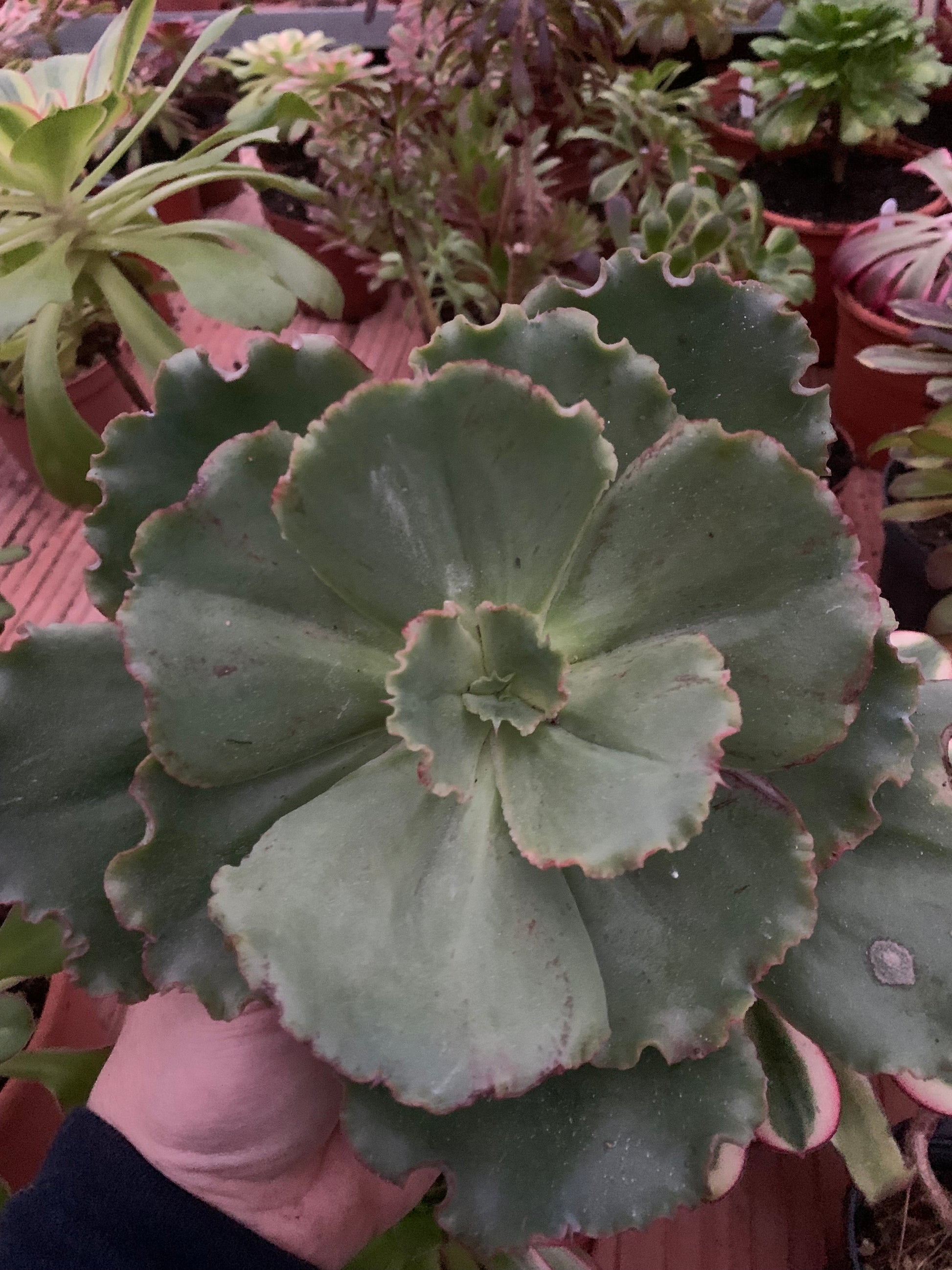 Suculenta cultivada en vivero exterior todo el año. Este tipo de cultivo favorece el crecimiento con tallo leñoso y aporta robustez y toda la belleza a la suculenta, signo de buena salud y que proporciona al aeonium una adecuada adaptación a su nuevo entorno.