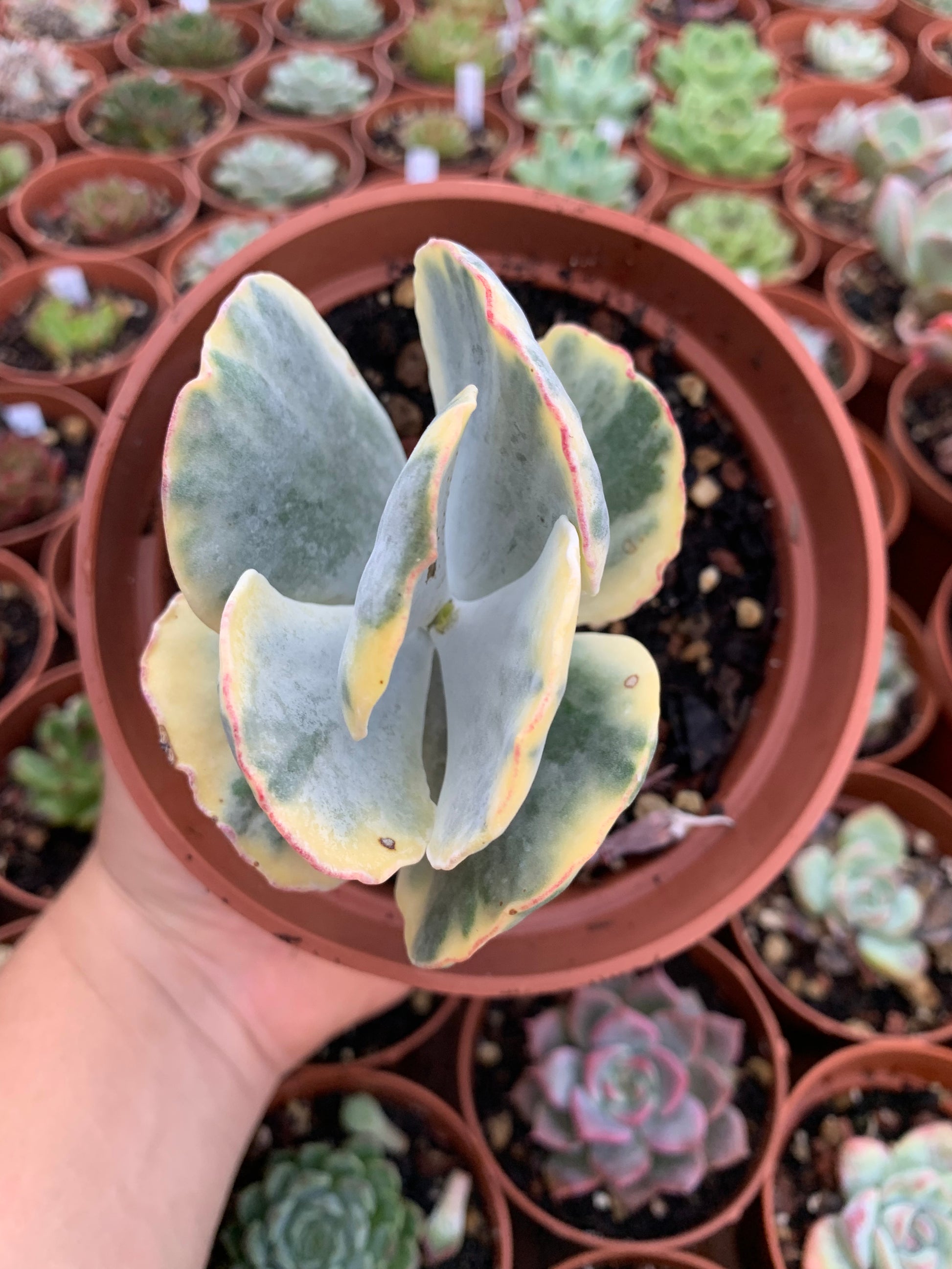 Suculenta cultivada en vivero exterior todo el año. Este tipo de cultivo favorece el crecimiento con tallo leñoso y aporta robustez y toda la belleza a la suculenta, signo de buena salud y que proporciona al aeonium una adecuada adaptación a su nuevo entorno.